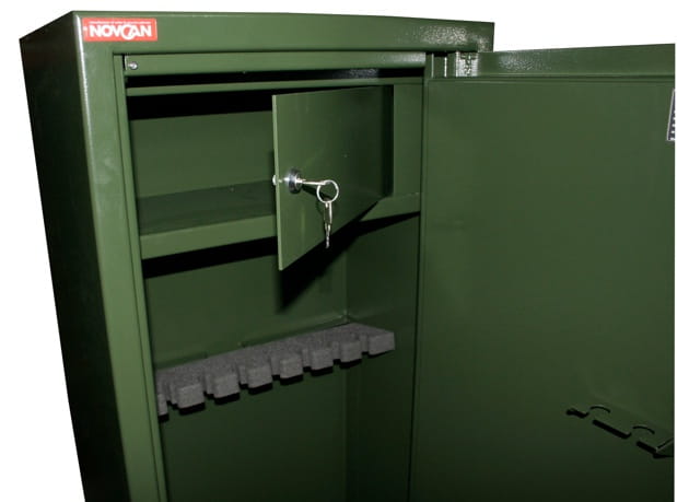Szafa na broń wykonana w klasie S1 wg. normy PN-EN 14450:2006. Dostosowana do najnowszych wymagań dot. przechowywania broni.